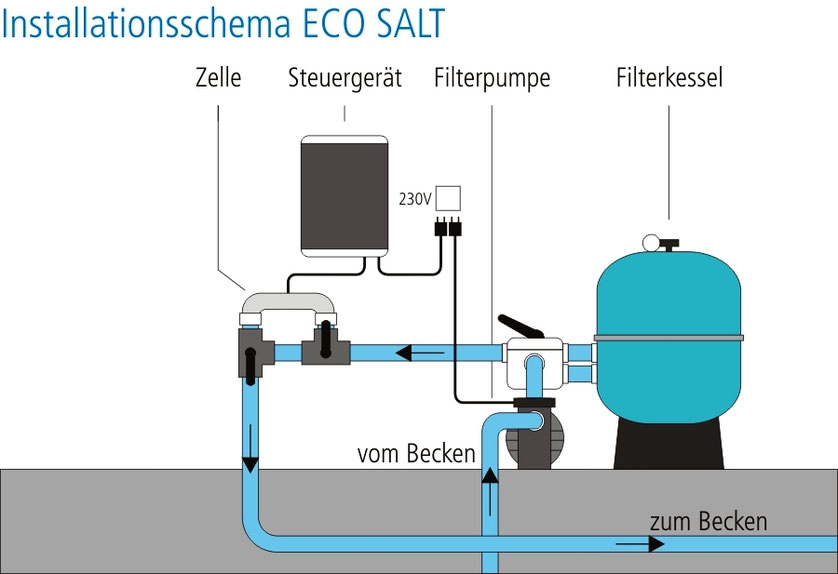 Die Wasserpflege eines Salzwasserpools unterscheidet sich nicht von der Wasserpflege eines Süßwasserpools oder Schwimmteichs. Es kommt also kein Mehraufwand auf Sie zu. Die Pflegemittel und -geräte bleiben dieselben. Nur Ihr Filtersystem wird einfacher und besser.